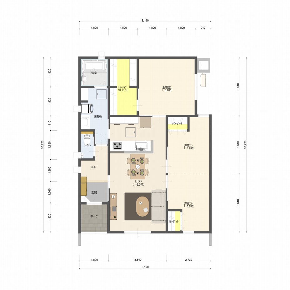玄関から洗面、そしてキッチンへの回遊できる間取りは、家事を効率的に行うためにも大変便利です。