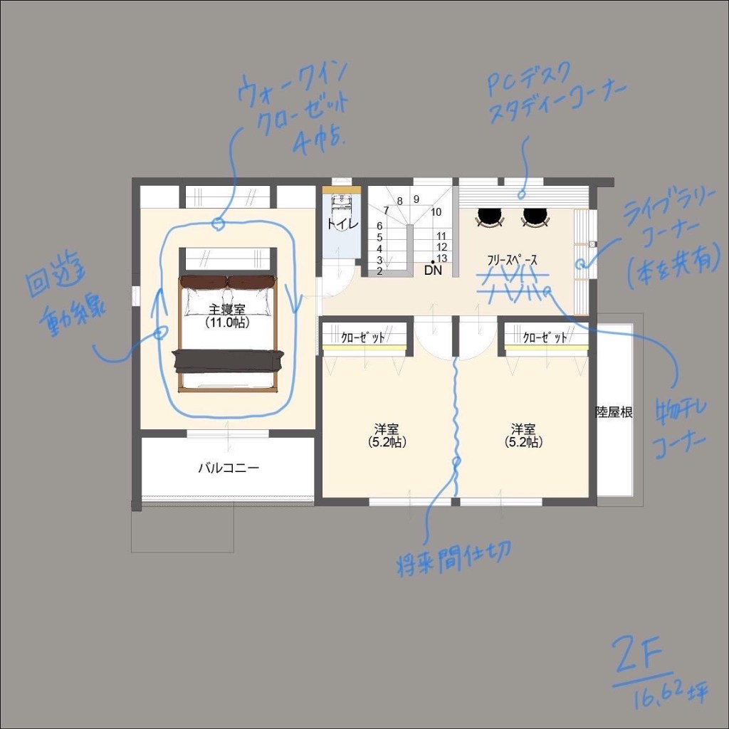 ①4.5帖のフリースペースにライブラリーコーナーを設け、本を共有できるスペースを確保